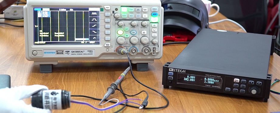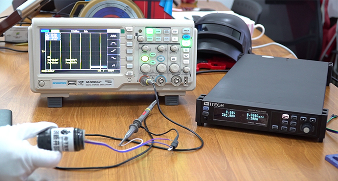測試用具: ① 310V高壓無刷直流電機 ② IT7600系列 高性能可編程寬壓電源 ③ IT-M3100 寬量程直流電源 ④ 示波器 ⑤ 數(shù)字電橋