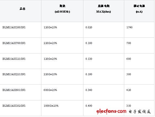 ;LQH43CN100K03L系列;LQG15HS2N2S02D系列;LQP18MN39NG02系列。 4:村田 靜噪元件/EMI靜噪濾波器 (磁珠) BLM15BB750SN1D系列