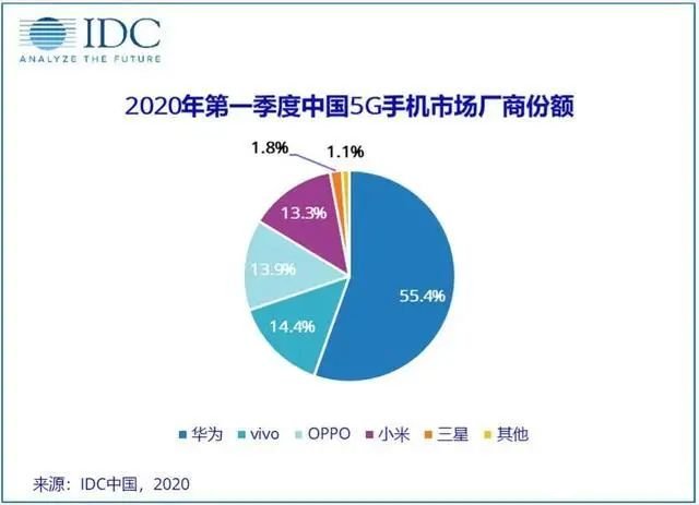 國(guó)內(nèi)5G智能手機(jī)出貨量累計(jì)已有2380萬(wàn)臺(tái),一季度出貨量1450萬(wàn)臺(tái),占整體市場(chǎng)的21.8%。同時(shí),5G手機(jī)的平均單價(jià)也在迅速下探。2020年第一季度,已降至600美元以?xún)?nèi)。值得注意的是,5G市場(chǎng),華為依舊占據(jù)了國(guó)內(nèi)半數(shù)以上份額。