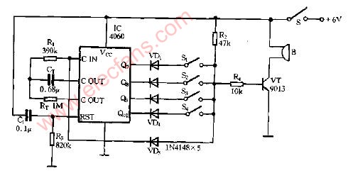 冰箱開門時(shí)間過長(zhǎng)提醒器電路圖