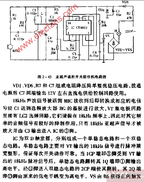 亞超聲遙控開關(guān)接收機(jī)電路圖