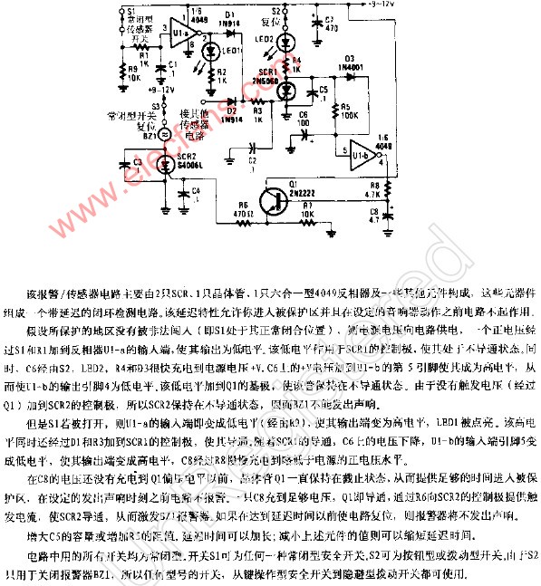 報警系統中的出和進門延遲裝置電路圖