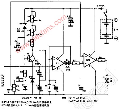 與其它類型的金屬探測器相比,本電路的工作原理是這樣的:當探測用電感線圈的電感量變化時,L振蕩器的振蕩頻率也產(chǎn)生變化。任何金屬體一靠近這個