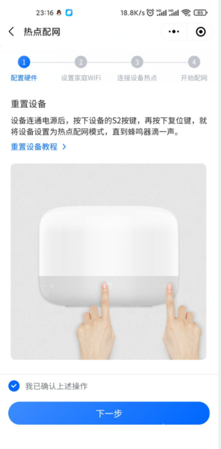 這個(gè)頁(yè)面比較重要,需要將設(shè)備進(jìn)入配網(wǎng)的方法告訴用戶(hù),引導(dǎo)用戶(hù)去操作,完成進(jìn)入配網(wǎng)模式: