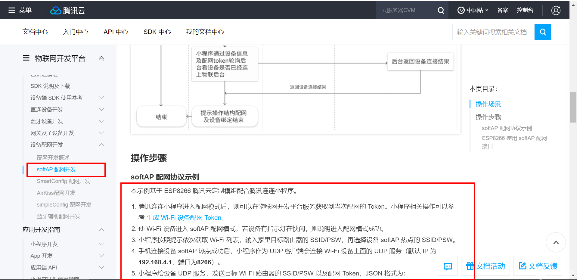 關(guān)于配網(wǎng)的流程,在騰訊官網(wǎng)有詳細(xì)介紹,看這里:物聯(lián)網(wǎng)開(kāi)發(fā)平臺(tái) softAP 配網(wǎng)開(kāi)發(fā) - 設(shè)備端開(kāi)發(fā)指南 - 文檔中心 - 騰訊云