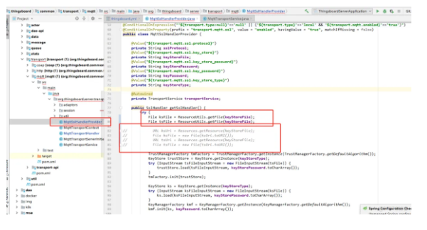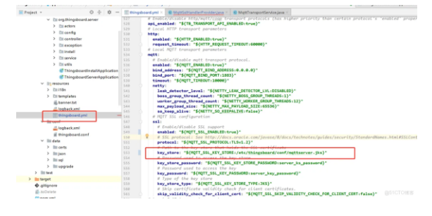 由于我們生成mqttserver.jks在/etc/thingsboard/conf下所以要修改配置文件的路徑,指定全路徑。