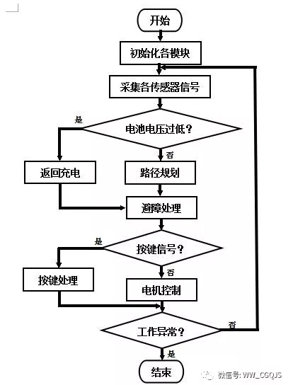 3、機(jī)器人開始工作,傳感探測(cè)模塊就開始不斷地采集外部信息,送到CPU進(jìn)行分析和決策產(chǎn)生機(jī)器人行走的路徑。