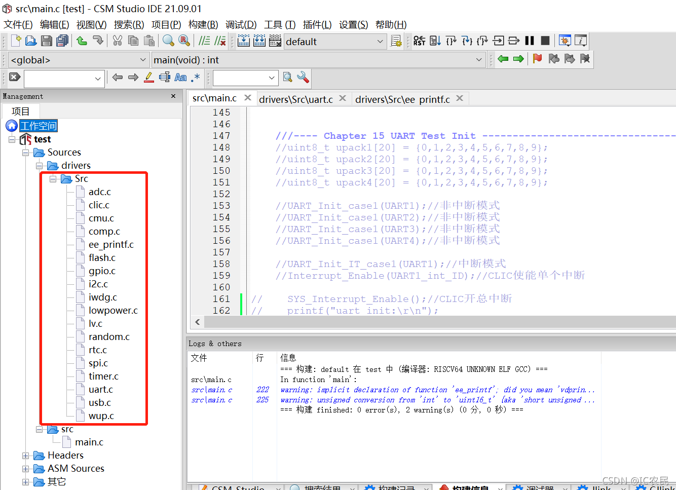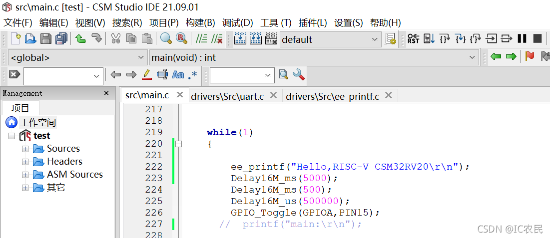 IDE: CSMStudio,也是南京中科微針對嵌入式項(xiàng)目RISC-V系列MCU開發(fā)的跨平臺支持的C/C++集成開發(fā)環(huán)境,提供了包括編輯器、C編譯器、宏匯編、鏈接器、庫管理、仿真調(diào)試器和下載器等在內(nèi)的完整開發(fā)資源。
