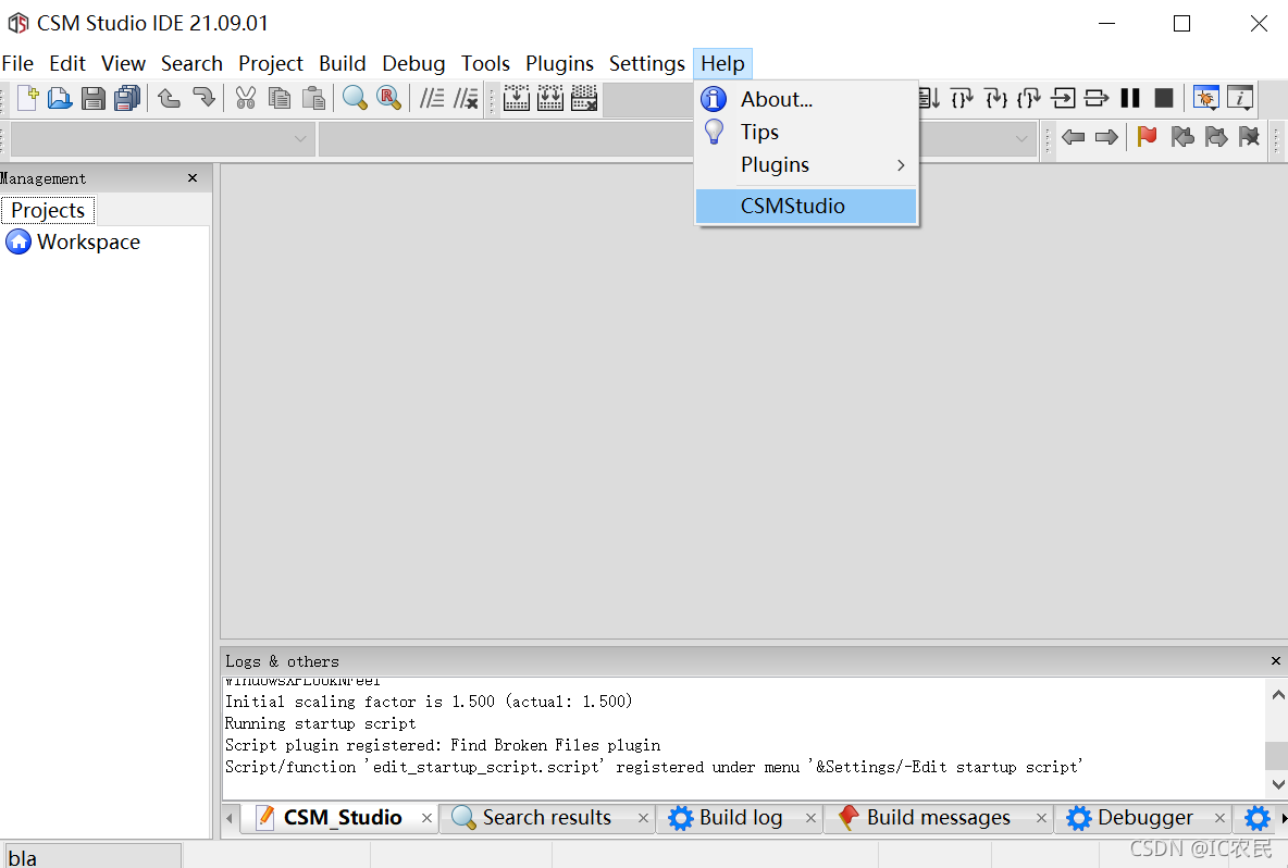 在菜單欄選中help,選中CSMStudio,就能打開說明文檔,通過說明文檔可以切換語言環(huán)境、創(chuàng)建項(xiàng)目,編譯項(xiàng)目,調(diào)試項(xiàng)目以及常見問題的說明。
