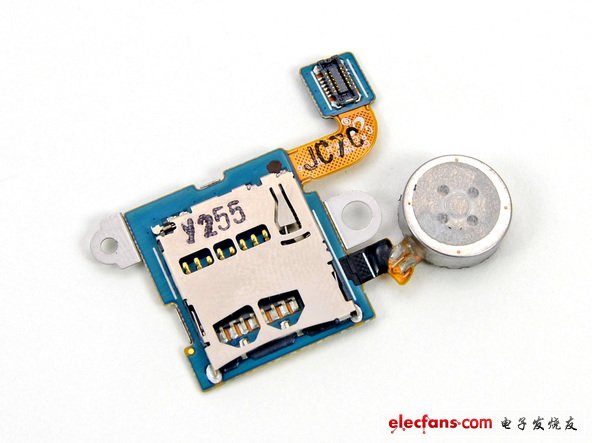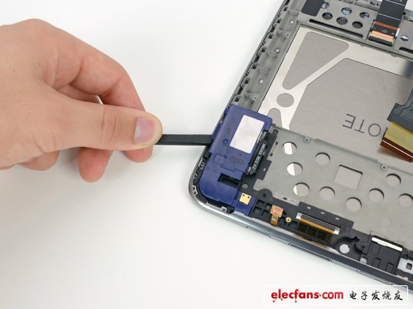 拆掉的第一個(gè)元器件是Note10.1的Micro SD 卡和振動(dòng)電機(jī)。