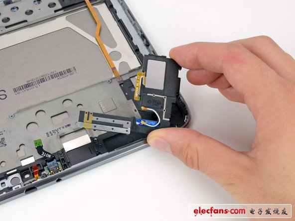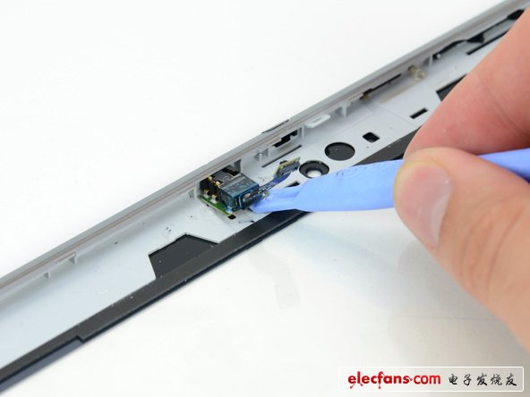 盡管該平板的大部分小元器件都能夠在不拆除很多東西的情況下拿掉,但耳機(jī)接口很穩(wěn)固。