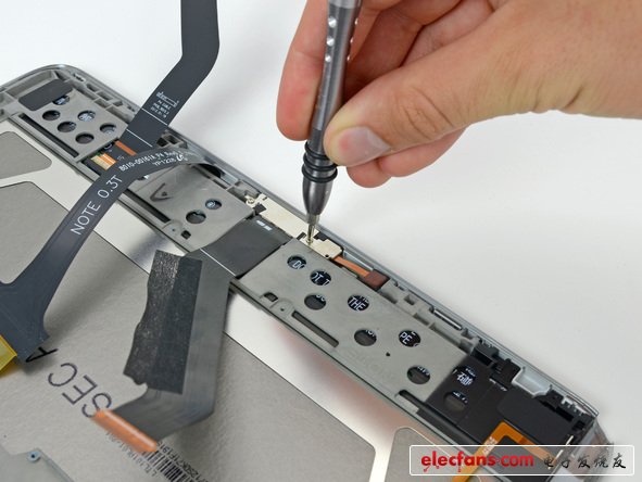 如前面提到一樣,在設(shè)備里面并沒有太多需要拆除的螺絲。如果你有記錄,則會(huì)發(fā)現(xiàn)總共有五種不同型號(hào)的螺絲,這和其它設(shè)備用盡可能多的螺絲去固定平板是不一樣的。