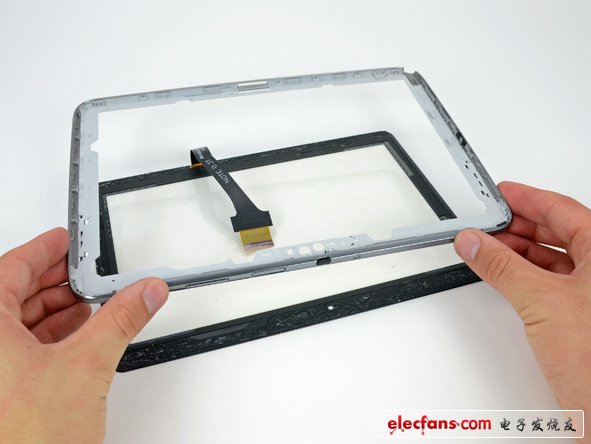 接下來我們要看看這個(gè)LCD能否從玻璃和數(shù)字化儀分離出來。這時(shí)設(shè)備是否具有可修理性的一個(gè)重要因素。如果這個(gè)玻璃可以和LCD分離,那么替換碰碎的玻璃則會(huì)變得更簡單了。