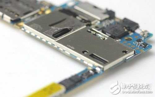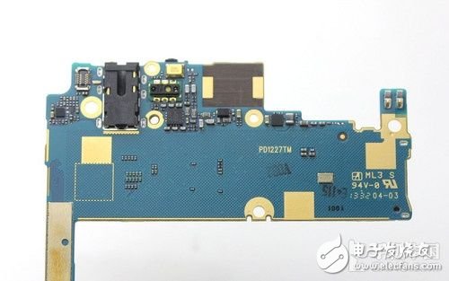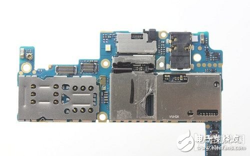 再來(lái)看看比較有特色的主板部分,vivo X3t采用了L型單面布板設(shè)計(jì),也就是說(shuō)整個(gè)芯片部分都被設(shè)計(jì)在了主板的一面,減小了主板的厚度。