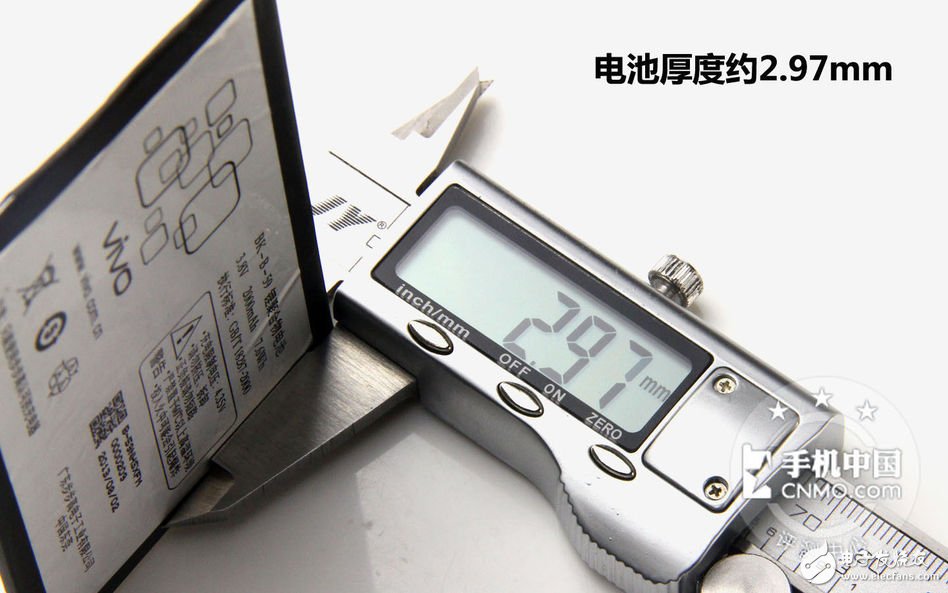來(lái)看看電池的厚度,大約在2.97mm左右。