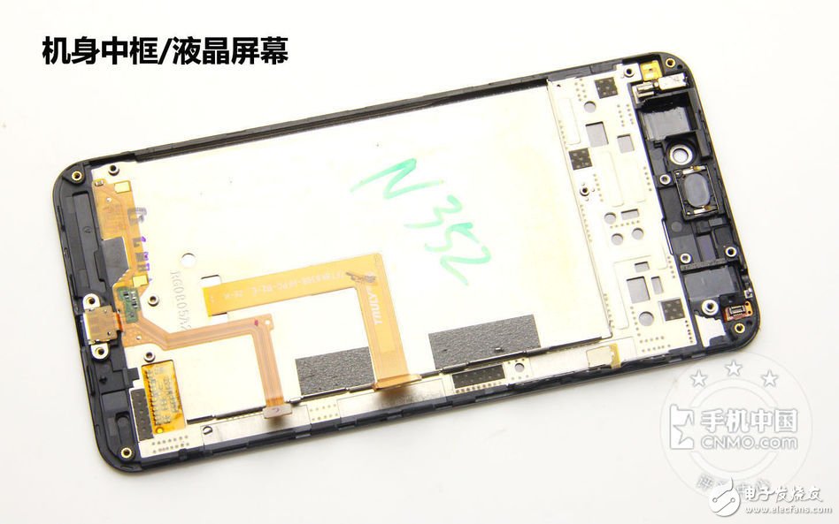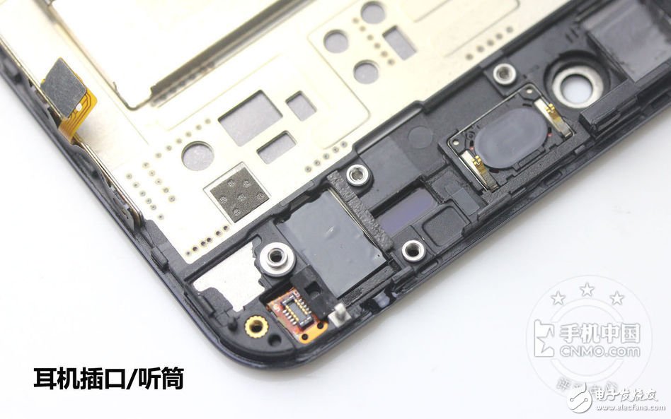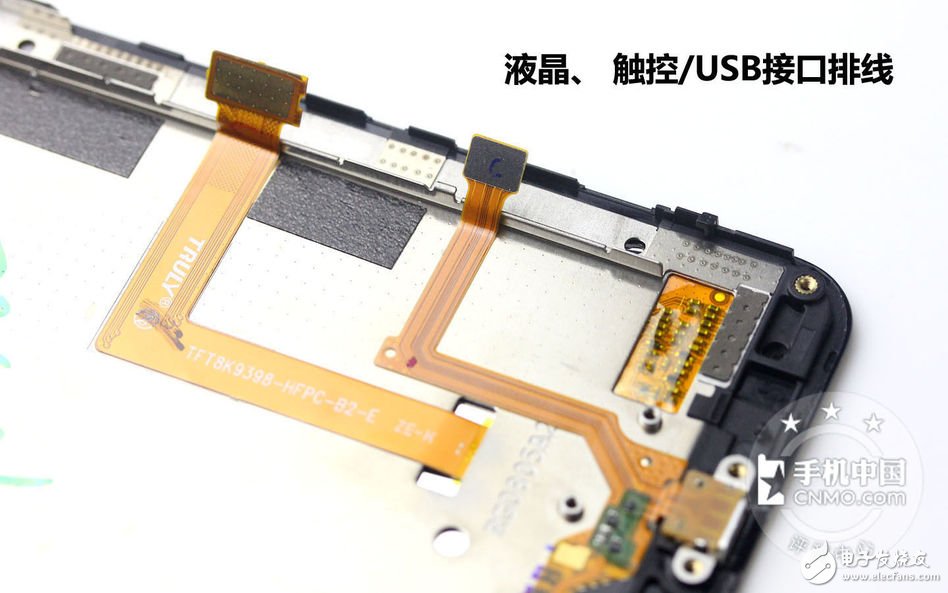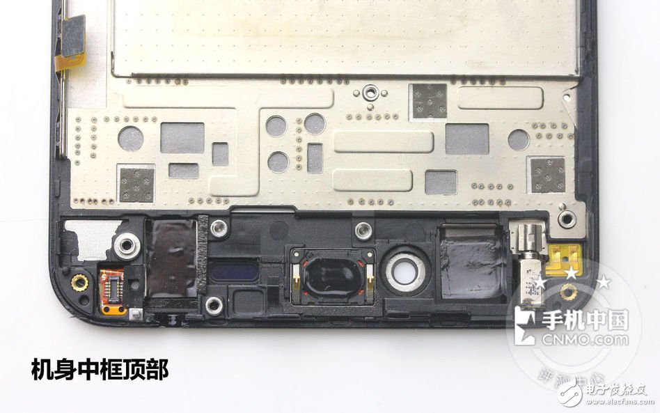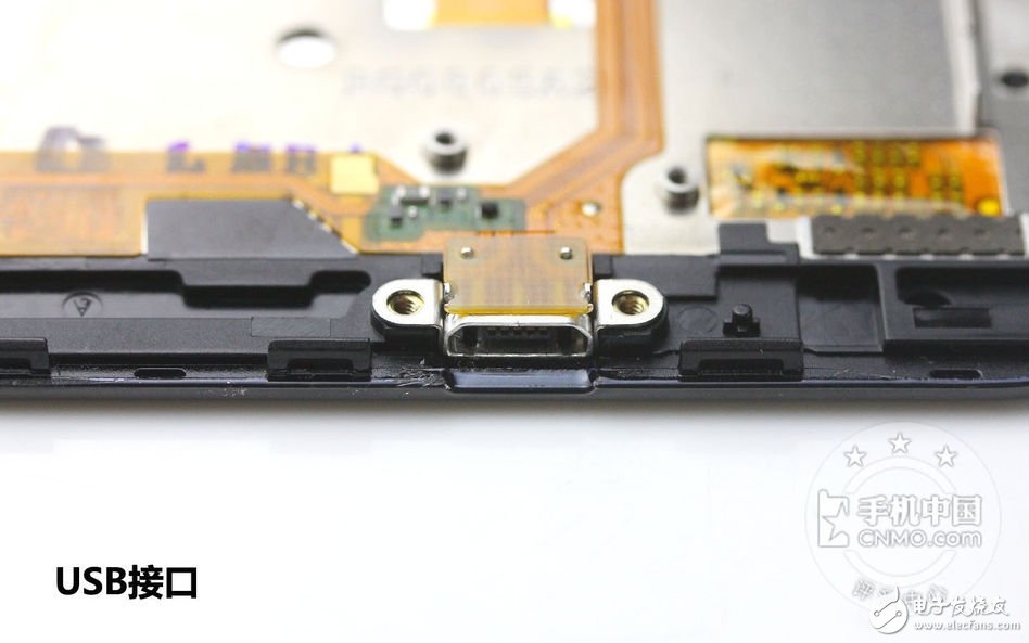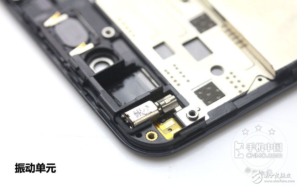機(jī)身中框部分的集成度相當(dāng)高,包括屏幕、觸控排線、USB接口、振動(dòng)單元、聽(tīng)筒等等,這些零部件基本無(wú)法拆除。