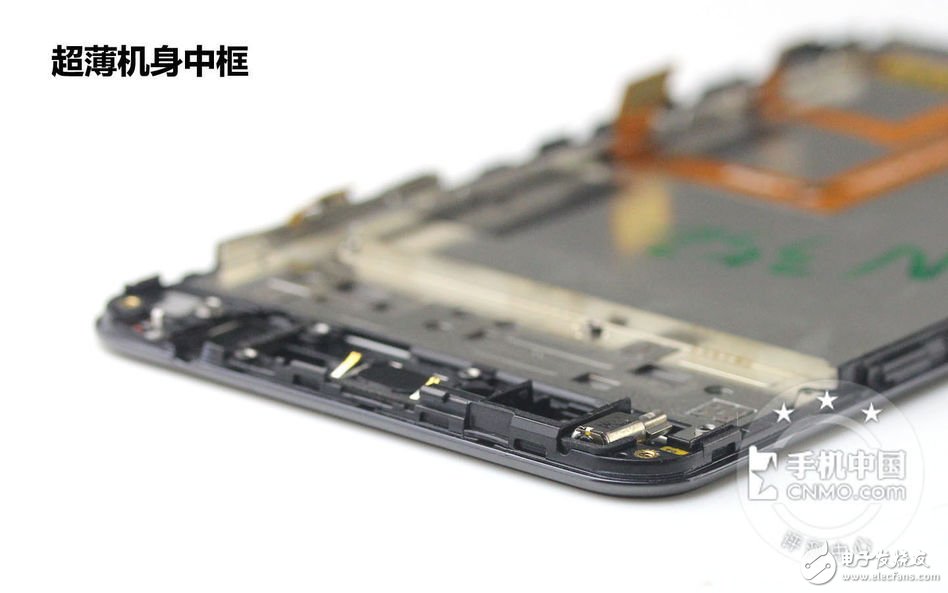 相比之前我們拆過(guò)的機(jī)型,vivo X3的整個(gè)屏幕中框部分非常的薄,加上超薄的電池、主板等部件,成就了5.75mm的超薄機(jī)身。