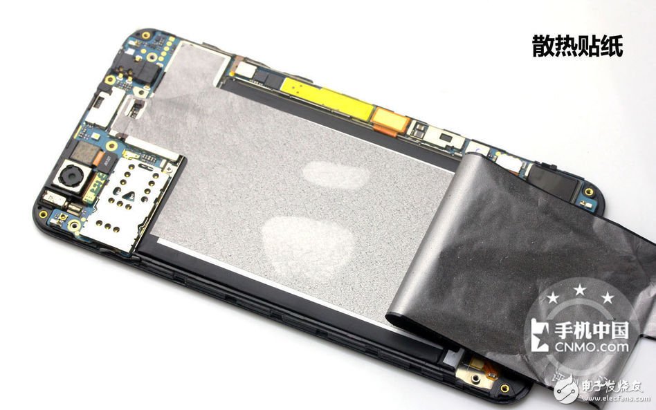 電池拆除后可以看見(jiàn)一大片的散熱貼紙,基本上覆蓋了能夠覆蓋的地方,拆機(jī)過(guò)程中貼紙基本廢除了。