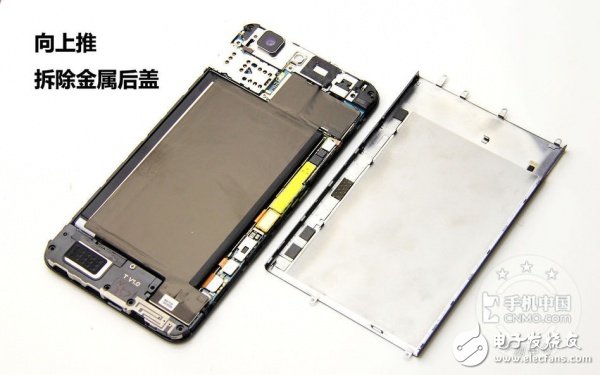 金屬后蓋與機(jī)身框架采用卡扣形式固定,將金屬后蓋向上用力推拆下。