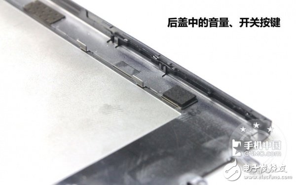 金屬后蓋上集成了音量、電源開(kāi)關(guān)按鍵,并且有膠墊來(lái)固定,同時(shí)也能起到一定的減震作用。