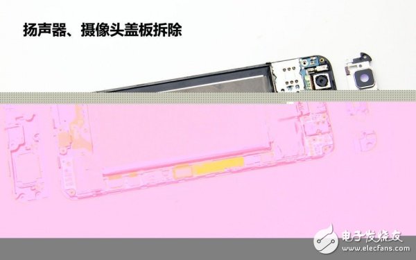 待全部螺絲拆卸完成后,接下來(lái)就可以拆卸揚(yáng)聲器、攝像頭蓋板兩部分了。