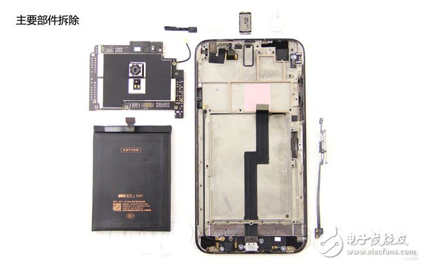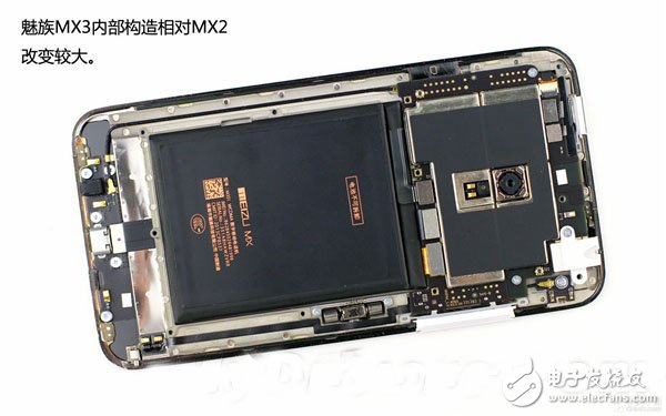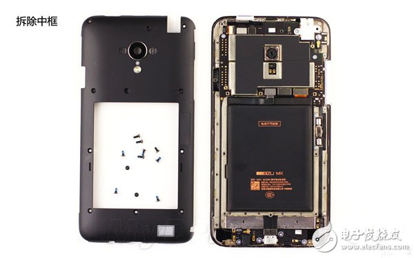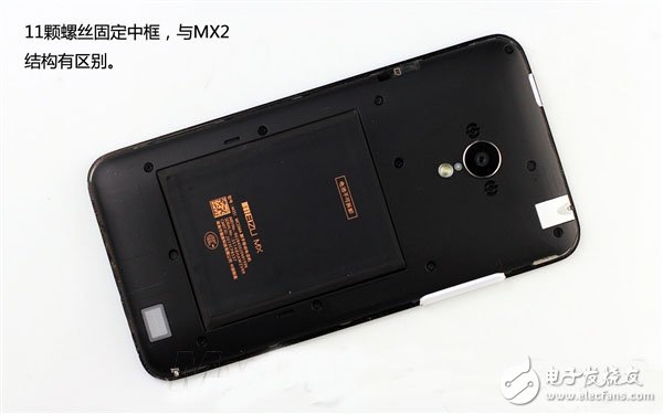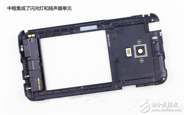中框部分除了起到保護作用外,還集成了閃光燈和揚聲器單元,而在MX2時閃光燈是安裝在后蓋上的,這樣一來,用戶更換后蓋的成本降低了。此外在后蓋上還有幾個天線的觸點。