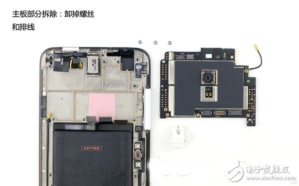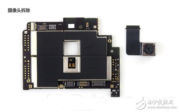 首先來拆卸明面上的部件,主板三顆十字螺絲,卸下耳機插口,撬開所有排線和一個射頻連接線,主板便可輕松取下。