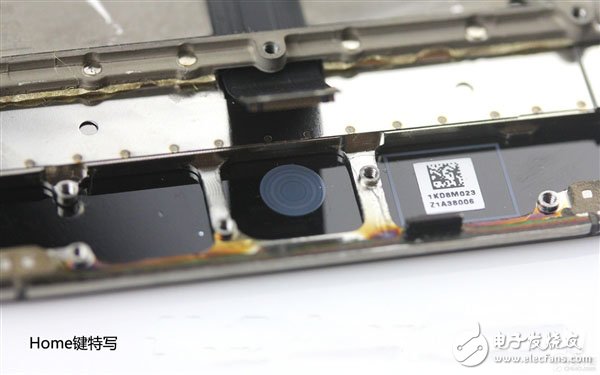 Home鍵特寫。Home鍵為觸控按鍵,并非實體。