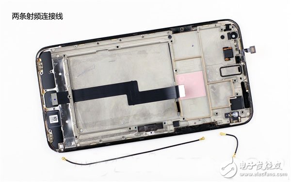 機身內部總共有兩條射頻連接線,一長一短??梢钥吹皆谝壕姘迳蠋в幸粚咏饘倏蚣?,保證了整機內部的強度。