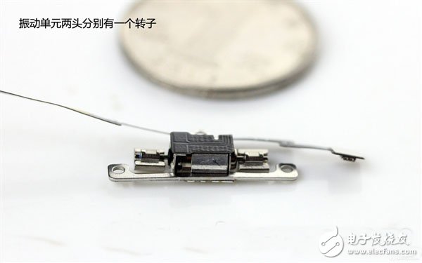 魅族MX3的振動單元比較有特色,傳統(tǒng)振動單元為一個轉子,而MX3上所配備的則是兩個轉子。振動單元用三顆十字形螺絲固定。