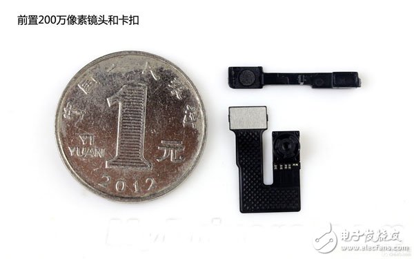 前置200萬像素索尼背照攝像頭和固定卡扣。前置鏡頭支持1080p視頻拍攝。