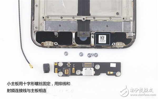 小主板采用五顆十字形螺絲固定,并且用排線和射頻連接線與主板相連。