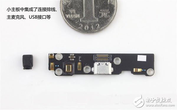 小主板中集成了連接排線、主麥克風、USB接口等。