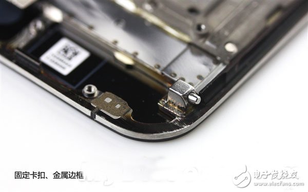 后蓋卡扣、金屬邊框特寫,可以看到焊點非常精致,同時卡扣也很牢靠。