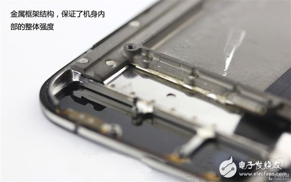 液晶面板上帶有金屬框架結構,保證了機身內部的整體強度。