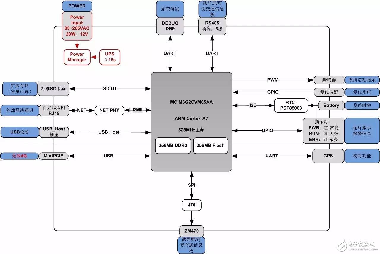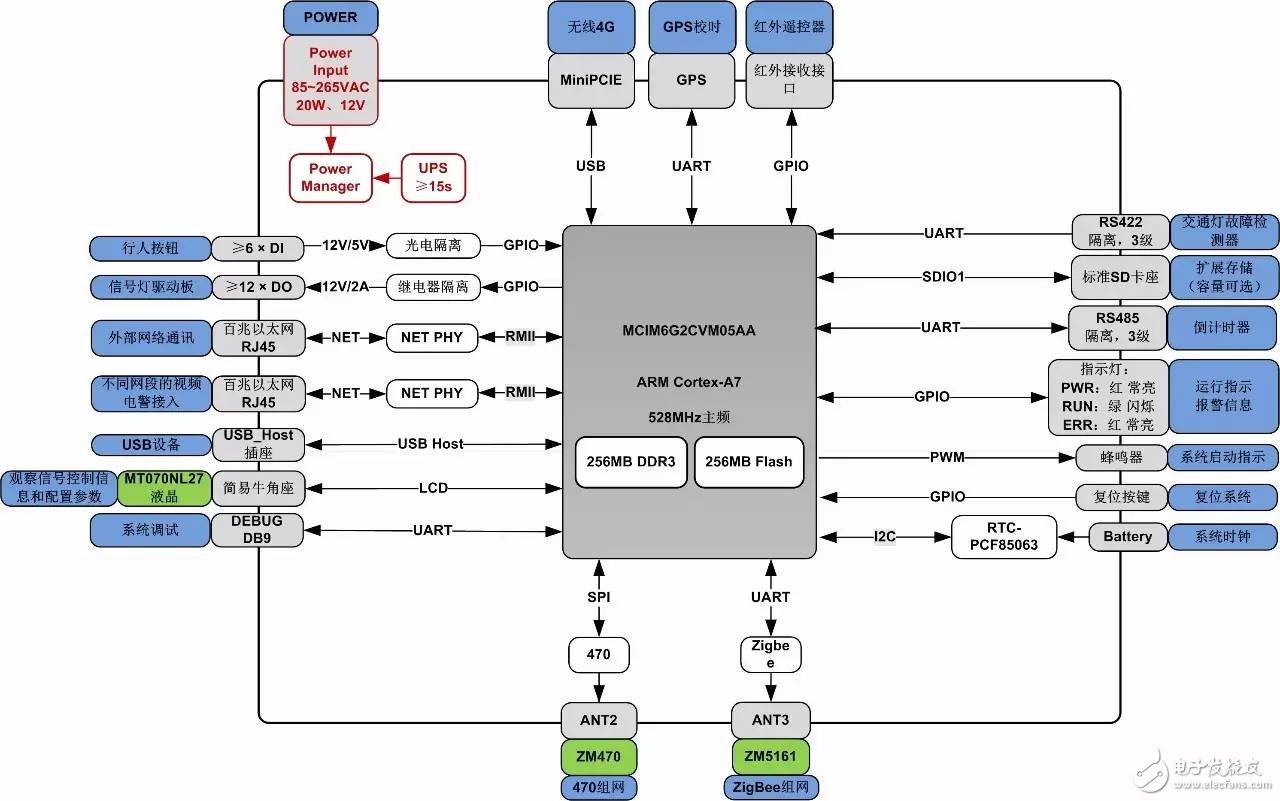 致遠電子采用Freescale i.MX6UL系列Cortex-A7處理器的M6G2C系列核心板做為控制器,設(shè)計出了交通信號控制器??刂破鞯姆桨冈O(shè)計如圖7所示。
