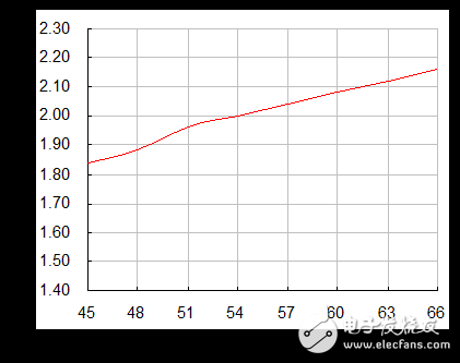 在負(fù)載電阻由45Ω不斷增大到66Ω時(shí),節(jié)點(diǎn)的輸出差分電壓也隨著由1.84V增大到2.16V,兩者近似線性關(guān)系。為了使發(fā)送節(jié)點(diǎn)的輸出差分電壓不至于過低,實(shí)際組網(wǎng)時(shí)負(fù)載電阻應(yīng)在圖1測試的范圍內(nèi)波動(dòng)。我們分析RL的組成有3個(gè):終端電阻、總線節(jié)點(diǎn)的差分輸入電阻、總線本身的有效電阻。