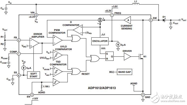 開(kāi)關(guān)穩(wěn)壓器需要通過(guò)某種方式改變其輸出電壓以響應(yīng)輸入和輸出電壓變化。一種方法是使用PWM控制相關(guān)電源開(kāi)關(guān)的輸入,從而控制其開(kāi)關(guān)時(shí)間(占空比)。工作時(shí),穩(wěn)壓器的濾波輸出電壓會(huì)反饋到PWM控制器來(lái)控制占空比。若濾波輸出發(fā)生變化,則施加到PWM控制器上的反饋會(huì)改變占空比以維持恒定的輸出電壓。
