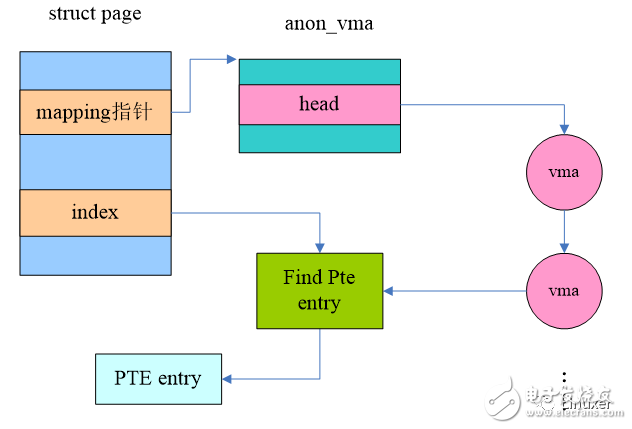 和file mapped類似,anonymous page也是通過VMA來尋找page frame對應(yīng)的pte entry。由于文件映射頁面的VMA數(shù)量可能非常大,因此我們采用Priority search tree這樣的數(shù)據(jù)結(jié)構(gòu)。對于匿名映射頁面,其數(shù)量一般不會太大,所以使用鏈表結(jié)構(gòu)就OK了。