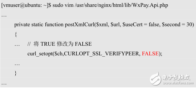 下載的SDK包為V3版本,在低版本的SSL庫上運(yùn)行會出現(xiàn)錯誤,我們直接禁用SSL服務(wù)端驗(yàn)證功能,修改/lib/WxPay.Api.php文件,將postXmlCurl函數(shù)中的SSL服務(wù)端驗(yàn)證功能禁用,修改如下: