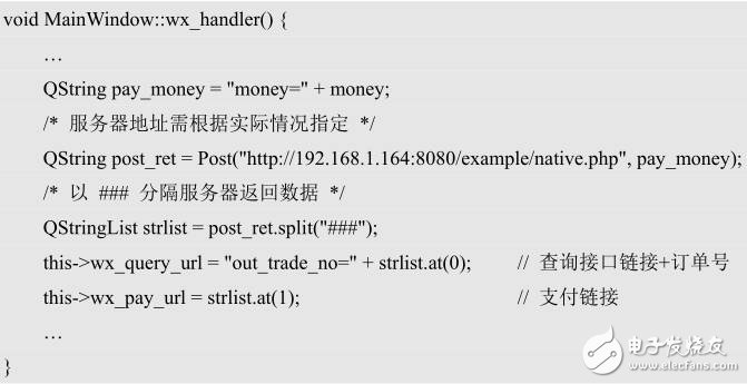 從系統(tǒng)流程圖中可以看到,我們需要編寫客戶端和服務(wù)器端的代碼,客戶端我們使用的是QT框架,服務(wù)器端我們直接使用微信官方的支付SDK包。在客戶端與服務(wù)器的交互過程中,最主要的是拿到微信支付的鏈接地址以及訂單號,鏈接地址為了生成二維碼圖片,訂單號為了查詢支付狀態(tài)。