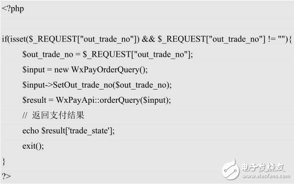 訂單查詢接口位于/example/orderquery.php文件中,我們對其進(jìn)行修改,當(dāng)客戶端POST訂單號到該接口后,將進(jìn)行相應(yīng)訂單號的支付狀態(tài)查詢,然后返回支付狀態(tài)。修改后代碼如下:
