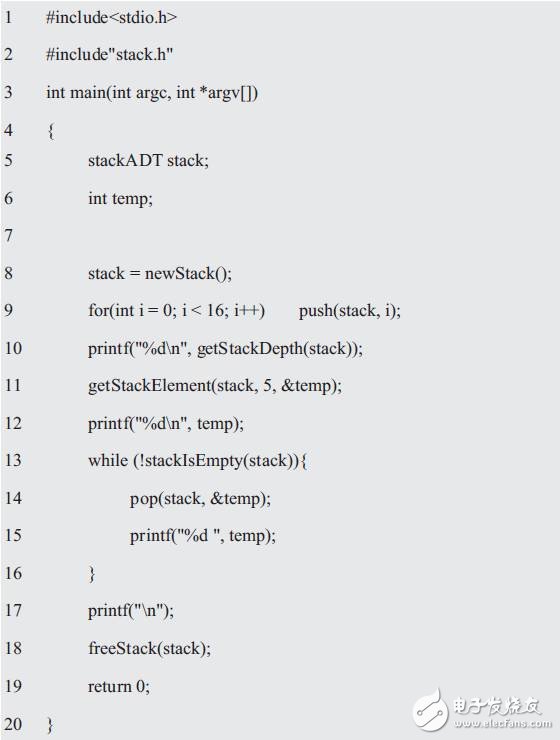 顯而易見,stackADT是代表stack1、stack2、stack3等所有具體棧的總稱的抽象數(shù)據類型,stack1、stack2和stack3分別指向不同的棧。因此只要將stack1、stack2和stack3作為實參傳遞給相應的函數(shù),即可訪問與之相應的棧。而抽象的方法是在棧的實現(xiàn)代碼和使用棧的代碼之間添加一個函數(shù)層。比如: