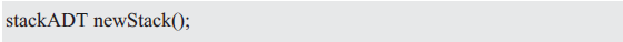 由于用戶完全不知道底層是如何表示的,因此必須提供一個用于創(chuàng)建一個新stackADT的函數(shù),且將它返回給用戶。用于創(chuàng)建一個新的抽象類型的值的函數(shù)名稱以new開始,以強調動態(tài)分配。其函數(shù)原型如下: