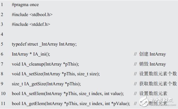 為了說明這些函數(shù)構成了IntArray對象的接口,并防止函數(shù)名和其它對象的接口沖突,于是在每個函數(shù)名前使用了前綴IA_,且每個函數(shù)都有一個IntArray*型的對象作為參數(shù),這個參數(shù)就是函數(shù)將要操作的對象。