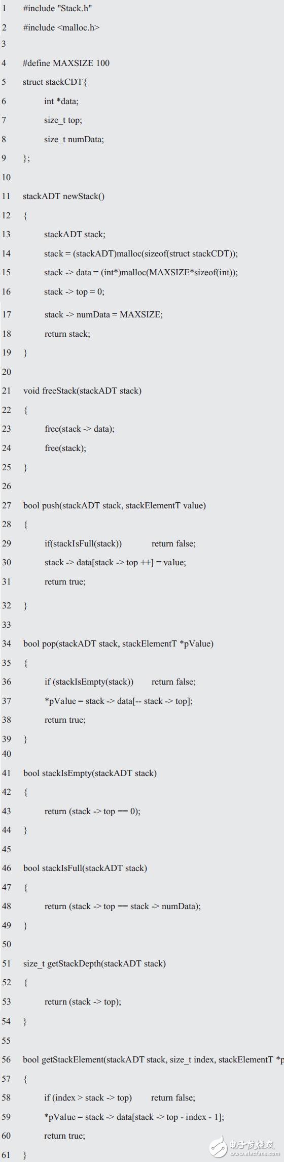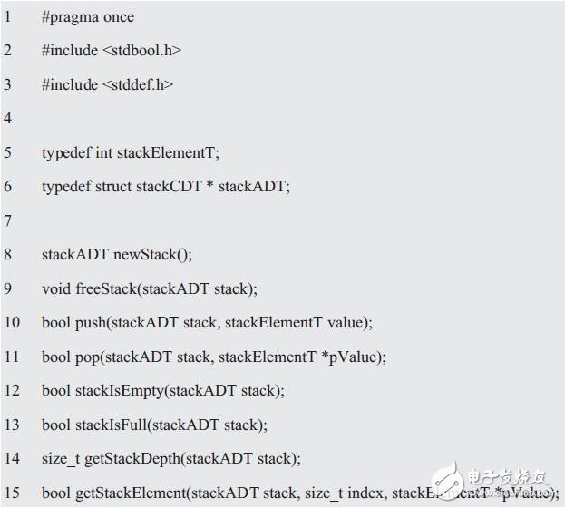 這些函數(shù)共同創(chuàng)建了接口,每個函數(shù)都以stackADT作為它的第一個參數(shù)。當聲明了函數(shù)接口后,即可實現(xiàn)相應的接口。
