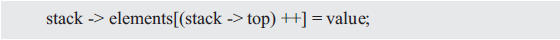 也就是說,當top的值加1時,則將新的元素值value入棧。即: