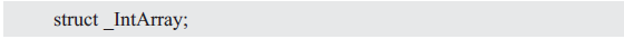 其告訴編譯器_IntArray是一個結構體標記,卻沒有描述結構體的成員,因此編譯器沒有足夠的信息確定結構體的大小,其意圖是不完全類型將會在程序的其它地方將信息補充完整。不完全類型的使用是受限的,因為編譯器不知道它的大小,所以不能在接口中用它聲明變量: