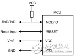 從圖中可以看出,只需接入四根線(MOD,/RESET,VCC,GND)就可以進(jìn)行程序燒寫了。其中只有一根為數(shù)據(jù)線,用于收發(fā)數(shù)據(jù)。