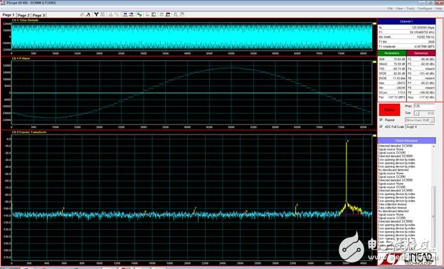 AD9265采用125Msps低抖動時鐘,LTC6409用一個48.1到178.1 MHz的濾波正弦信號來驅(qū)動。SNR和SFDR利用PScope記錄。在圖5中可看到收集的樣本數(shù)據(jù)。